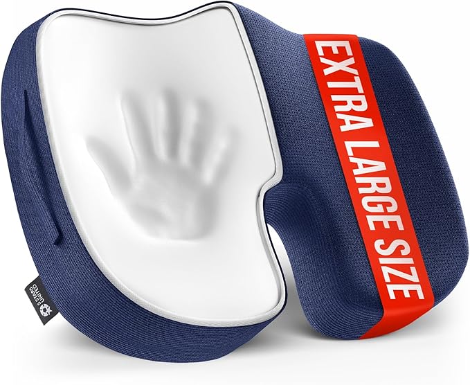 5 STARS UNITED Seat Cushion for Tailbone Pain Relief โ Large Memory Foam Cushion for Coccyx, Hip, Sciatica & Post-Surgery Recovery โ Wheelchair, Car, Desk, Gaming & Office Chairs, Blue