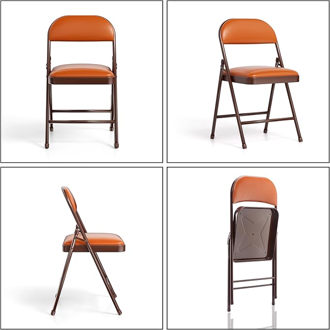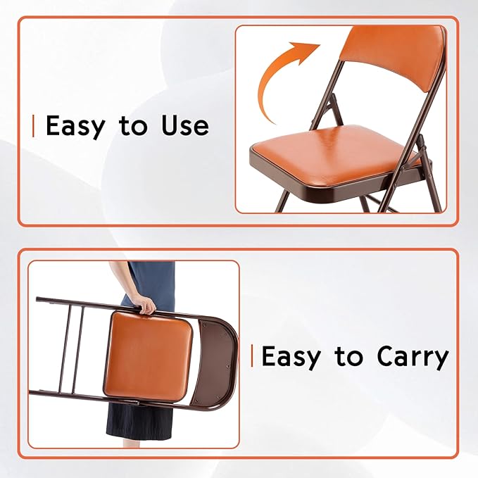 - 【Multi-functional Use】: Multi-occasions use, for example, wedding party, banquet venues, flea market,community volunteer activity, business meetings, trade shows, reception areas, family reunions, backyard events. You can use this padded folding chair as picnic chairs or birthday party chairs,, folding dining chairs, barbecue chairs, buffet chairs etc.