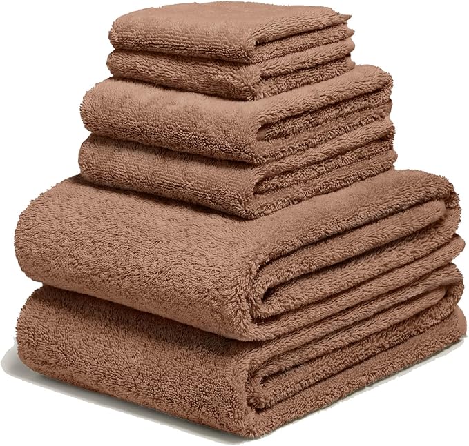 IItalic Ultraplush Australian Cotton Towels Standard 6 Piece Set, 2 Bath, 2 Hand, 2 Washcloths, 800GSM Lightweight, Highly Absorbent & Quick Drying Soft Resort Grade Towels (Clay)
