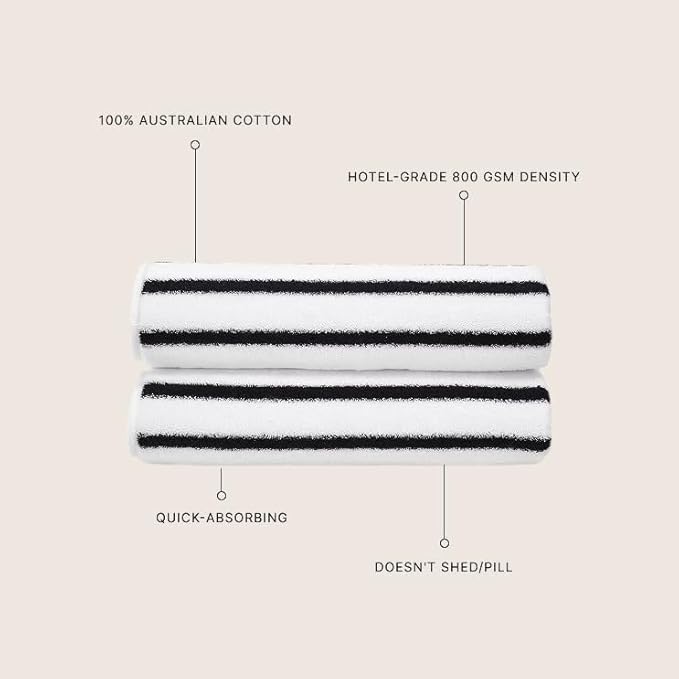 - Oeko-Tex Certified for Eco-Friendly Comfort – Certified by the Oeko-Tex Standard 100, these towels are guaranteed free of harmful chemicals, ensuring safety for you and your family. The towels are made from sustainably sourced Australian cotton, known for its high quality and water-efficient cultivation, so you can indulge guilt-free in everyday luxury