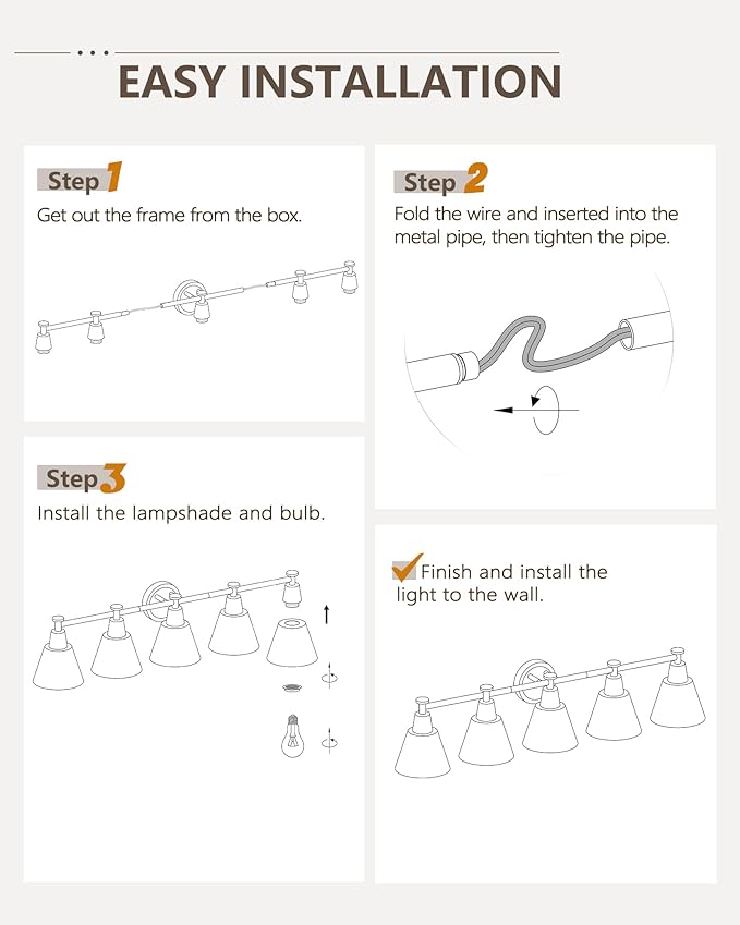 - Effortless Installation – Measuring 37.4” (L) × 6.5” (W) × 8.3” (H), these bathroom light fixtures over mirror come with all necessary mounting hardware for a hassle-free setup.