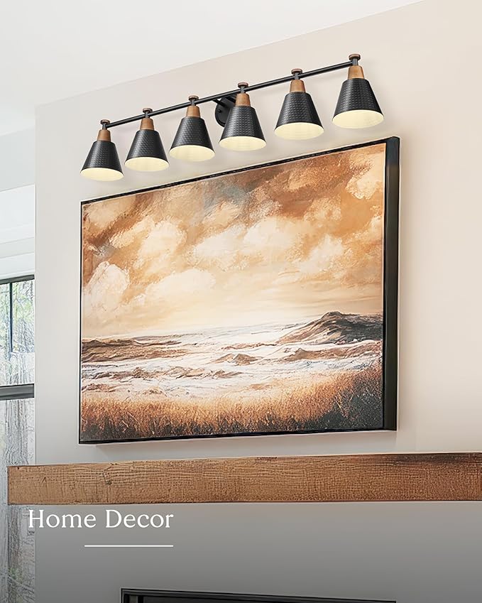 - Refined & Reliable Illumination – ETL listed for safety, this black bathroom light fixture combines farmhouse charm with sleek modern appeal. Featuring a 6 light bathroom vanity light design, it not only adds sophistication but also delivers dependable performance.