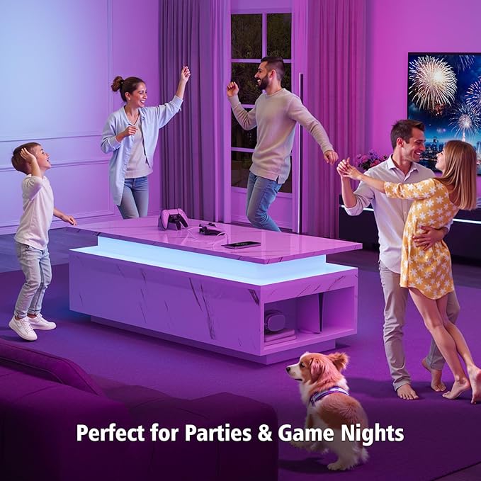 - 【Touchscreen Control Panel】 Instantly adjust RGB modes, brightness, and 16 million colors via one-touch controls on this LED coffee table. The light bar syncs to your music rhythms for dynamic atmospheres.