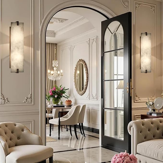- 3.Marble Wall Sconce PERFECT FOR YOUR SPACE - The Marble Wall Sconce is ideal for a variety of spaces for bathrooms.It's great in dining rooms,bars,kitchen counters,over sinks bedside living room bathroom library and in bedrooms.This Wall Lamp works with industrial, modern and transitional designs.