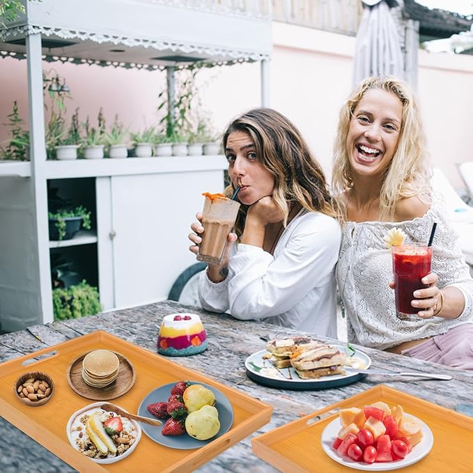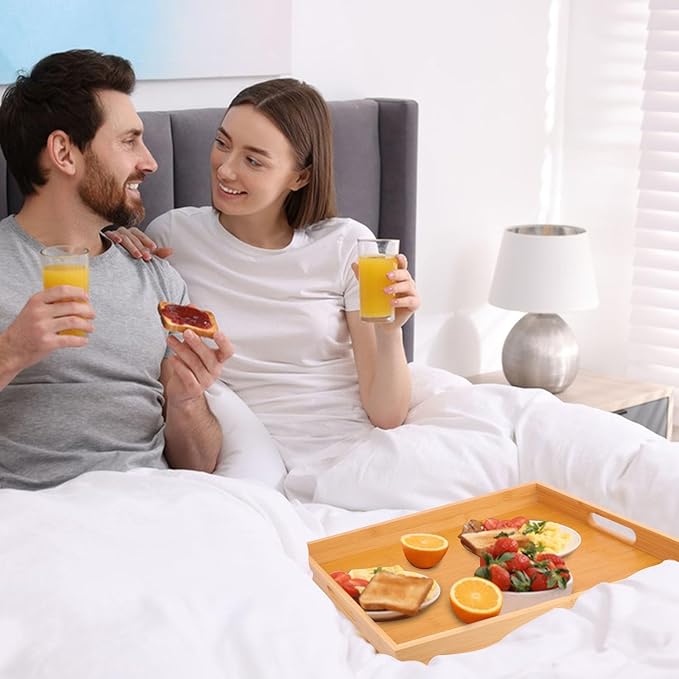 - 【Safe and Secure】 These bamboo Breakfast trays for serving food feature wrapped edges to prevent items from falling. The wide handles ensure a strong grip and stability, making your serving experience hassle-free and enjoyable.