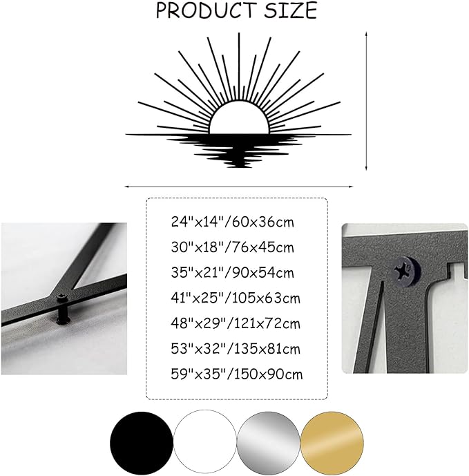- Sunrise Metal Wall Art: Themed around the rising sun, this elegant metal sun wall decor finish with minimalist line art fixes the sun at the moment it rises over the eastern horizon to add a warm touch to any room you wish to decorate, it's the first light of the morning that belongs to you