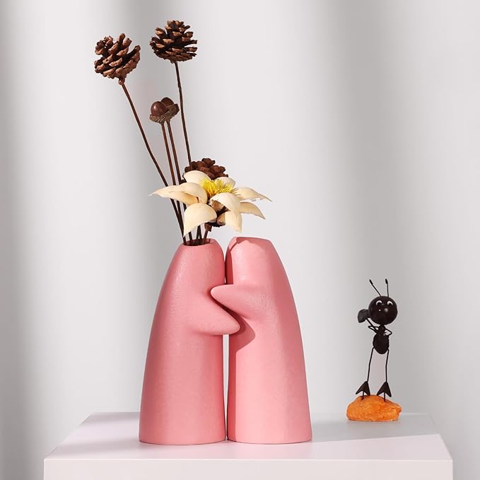 - Unique Embrace-Shaped Design: The white ceramic bud vase set of 2 boasts a creative embrace-shaped design, bringing a touch of love and warmth to any space. The small vases home decor resemble a tender embrace, making them a nice centerpiece that adds emotional depth and aesthetic appeal
