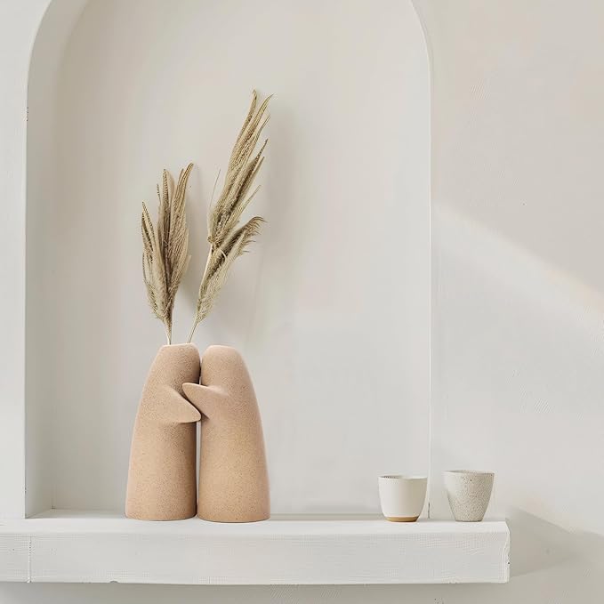 - Unique Embrace-Shaped Design: The white ceramic bud vase set of 2 boasts a creative embrace-shaped design, bringing a touch of love and warmth to any space. The small vases home decor resemble a tender embrace, making them a nice centerpiece that adds emotional depth and aesthetic appeal