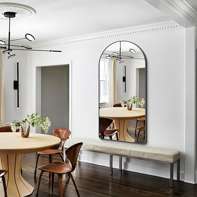 - Arched Bathroom Mirror Design: The Arched-top wall mirror makes your bathroom more elegant and classy, which especially attracts your eyes.bathroom mirrors for over sink,living room wall decor, black arched mirror Ideal for wall mirrors decorative, black mirror for bathroom make the space more brighter and spacious.