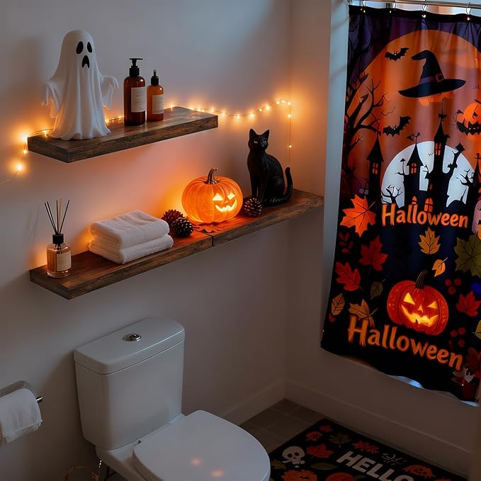 BAYKA Floating Shelves Bathroom for Wall โ Shelf Over Toilet Farmhouse Rustic Wood for Bedroom, Kitchen, or Living Room Decor Organization, Halloween Decor Shelves โ Rustic Brown, Set of 3