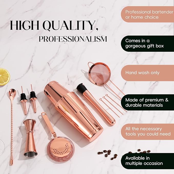 - - Aesthetics - Our Stainless steel rose gold boston shaker set are recommend hand wash only for easy cleaning.HOMEKEROS cocktail shaker set fits your home bar and Commercial Bar decor.Rose gold mirror finishes look sleek and very beautiful.