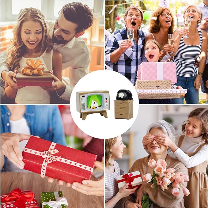 - Cute Desk Accessories: The dimensions of the TV are 1.7*0.8*1.5 inches, and the telephone cabinet measures 0.8*0.9*1.65 inches. This design adds charm and whimsy to your workspace