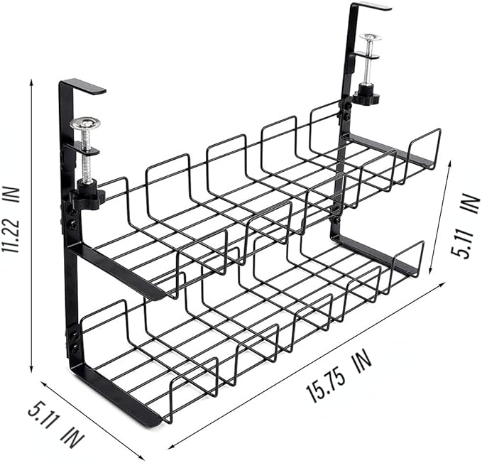- Universal Under Desk Cable Management Solution Organize power cords, USB hubs, and surge protectors effortlessly with our two-tier under desk cable management tray. Perfect for home offices, gaming setups, and workspaces, its adjustable rotating screws fit any desk thickness (0.4"-2.5") without drilling, keeping wires hidden and desks clutter-free.