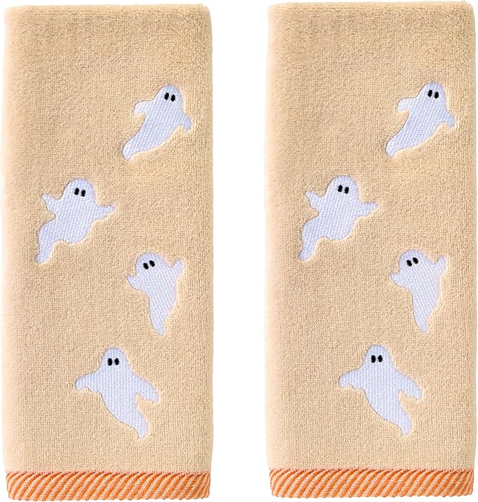 SKL Home Halloween Tossed Ghosts 100% Cotton Embroidered 2pc Hand Towel Set, Decorative for Bath/Kitchen/Bar & Gift, Taupe