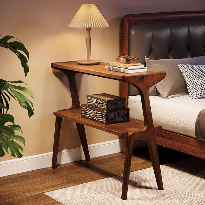 - Space-Saving Solution: Measuring 11.81" D x 27.56" W x 26.38" H, this tall skinny end table optimizes your living area without sacrificing functionality, featuring two convenient storage shelves for organizing daily essentials