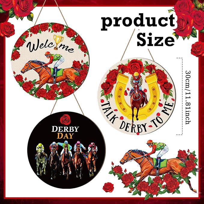 - Horse Racing Decorations: with this set of 3 horse racing themed front door hanging decors, your home will radiate with the festive atmosphere of horse racing; Each piece is crafted with passion and attention to detail; Their classic colors are designed to blend seamlessly with your existing home decor, while still making a significant impact
