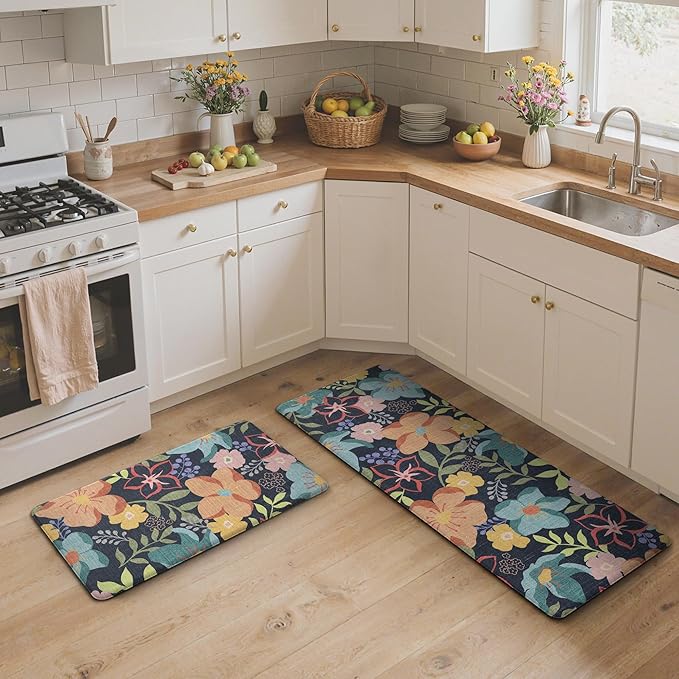 - Vintage Floral Design: Bring farmhouse charm to your home and kitchen with GENIMO's vintage-inspired mat set! These beautifully crafted runner rugs feature refined floral patterns and rich, artistic colors that instantly energize your space while adding cozy sophistication to your home decor. The perfect kitchen essentials for new home, apartment must haves, or house upgrades to infuse personality and warmth