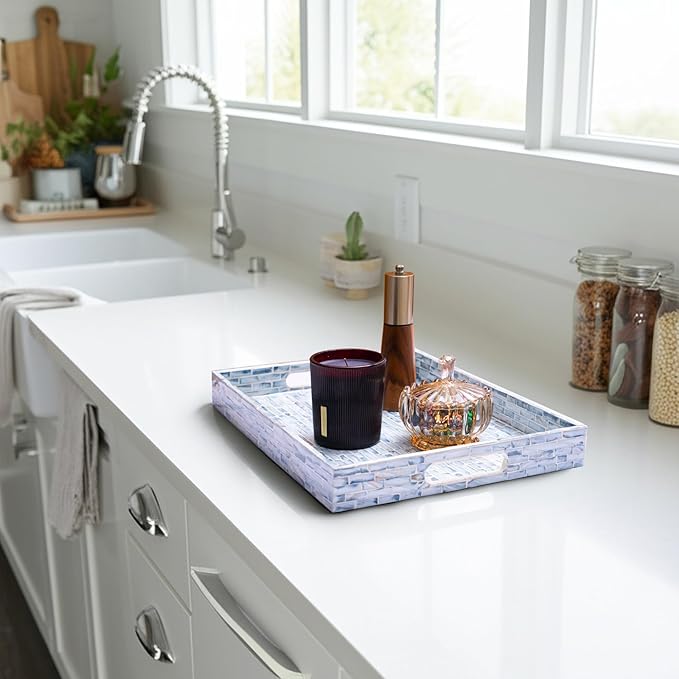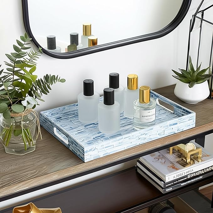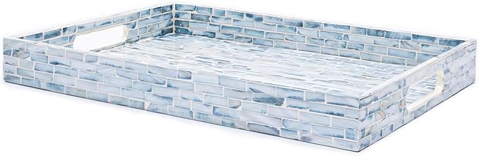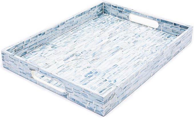 - STYLISH FLORAL TRAYS with the great workmanship by Vietnamese artisans, flawlessly finished with strong wood core and blue floral pattern well-sorted MOTHER OF PEARL SHELLS inlayed on the surface creates an elegant handmade centerpiece to brighten your decoration, best matches any beach/coastal nauticaNew Home Gifts For Homel theme.