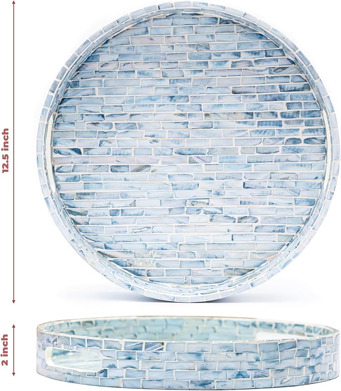 - STYLISH FLORAL TRAYS with the great workmanship by Vietnamese artisans, flawlessly finished with strong wood core and blue floral pattern well-sorted MOTHER OF PEARL SHELLS inlayed on the surface creates an elegant handmade centerpiece to brighten your decoration, best matches any beach/coastal nauticaNew Home Gifts For Homel theme.