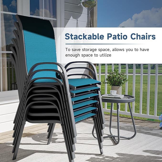 Amopatio Patio Chairs Set of 6, Outdoor Stackable Dining Chairs for All Weather, Breathable Garden Outdoor Furniture for Backyard Deck, Light Blue