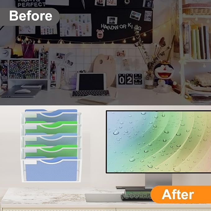 Kuntine.B Wall File Organizer Office Hanging Magazine Holder Wall File Organizer for Office Home (White, 5 Tier)