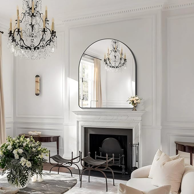 - Arched Bathroom Mirror Design: The Arched-top wall mirror makes your bathroom more elegant and classy, which especially attracts your eyes.bathroom mirrors for over sink,living room wall decor, black arched mirror Ideal for wall mirrors decorative, black mirror for bathroom make the space more brighter and spacious.