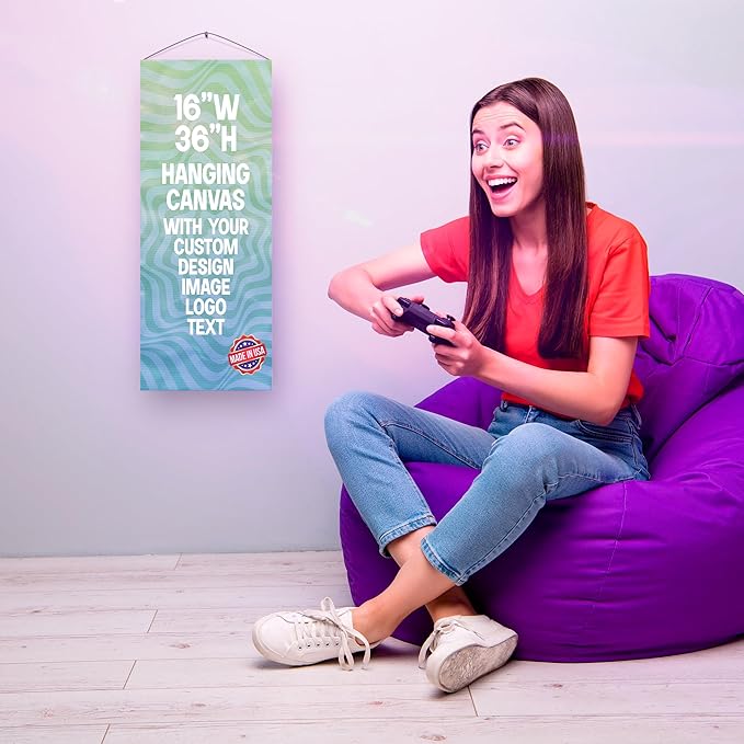 Custom Hanging Canvas Wall Art (16”x35”) by BCB Print | Personalized Picture Banner | Ready to Hang Vertical Home Decor | HD Print Bedroom & Living Room Wall Art | Express Dispatch/Ship | Made in USA
