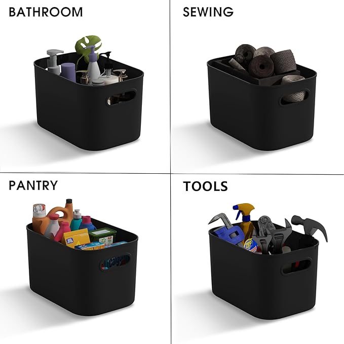 - VERSATILE: The plastic organizer binswork perfectly for organizing the pantry and cabinets, snacks, coffee, tea, books, cleaning supplies, arts and crafts, works great for bathroom, closet, camper, kitchen, under the sink, office garbage shelves, a greasy addition to your pantry cupboards