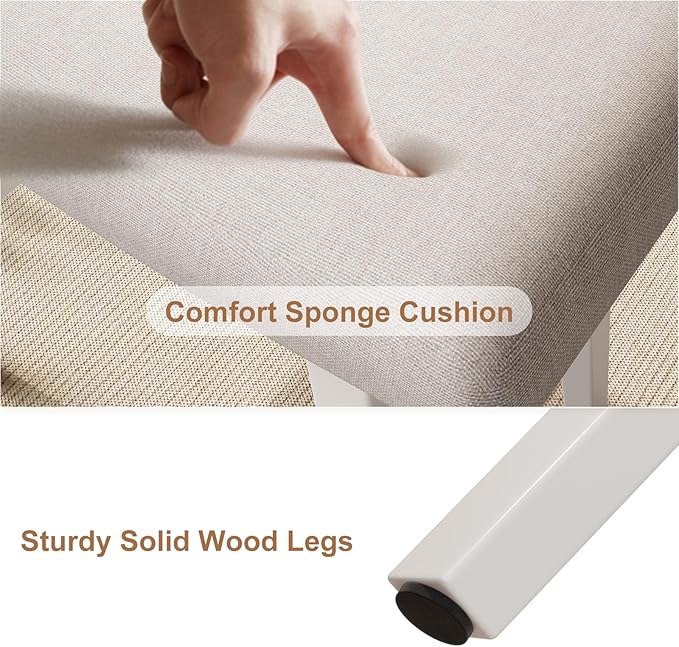 - 【DURABLE SOLID WOOD STOOL】Made from 100% FAS-grade rubberwood, this vanity stool features a finely sanded, burr-free finish. I-beam construction ensures lasting sturdiness and stability for years