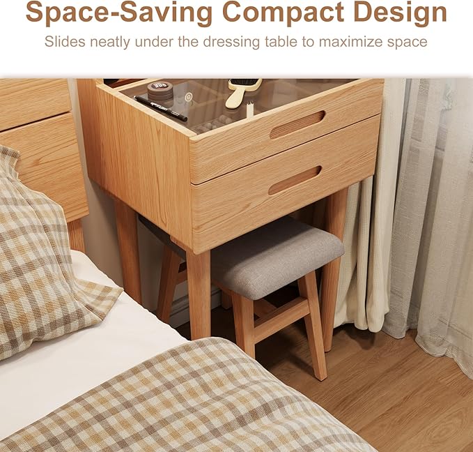 - 【DURABLE SOLID WOOD STOOL】Made from 100% FAS-grade rubberwood, this vanity stool features a finely sanded, burr-free finish. I-beam construction ensures lasting sturdiness and stability for years