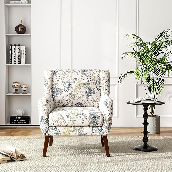- Attractive Floral Accent Chair - The Angle of the back, the position of the arms, and the width are ergonomic. The wide backrest and seat, made of highly elastic sponges and springs, provide you with maximum comfort. This armchair features wooden legs and a beautiful patterned design for a traditional and chic look.