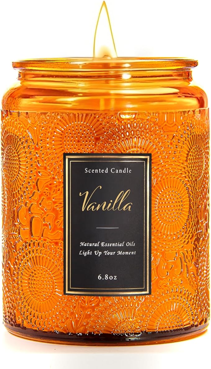 Scented Candle for Home Vanilla, Luxury Glass Candles Soy Wax for Men and Women, Aromatherapy Candle Gift for Christmas Birthday Mother, 6.8 oz