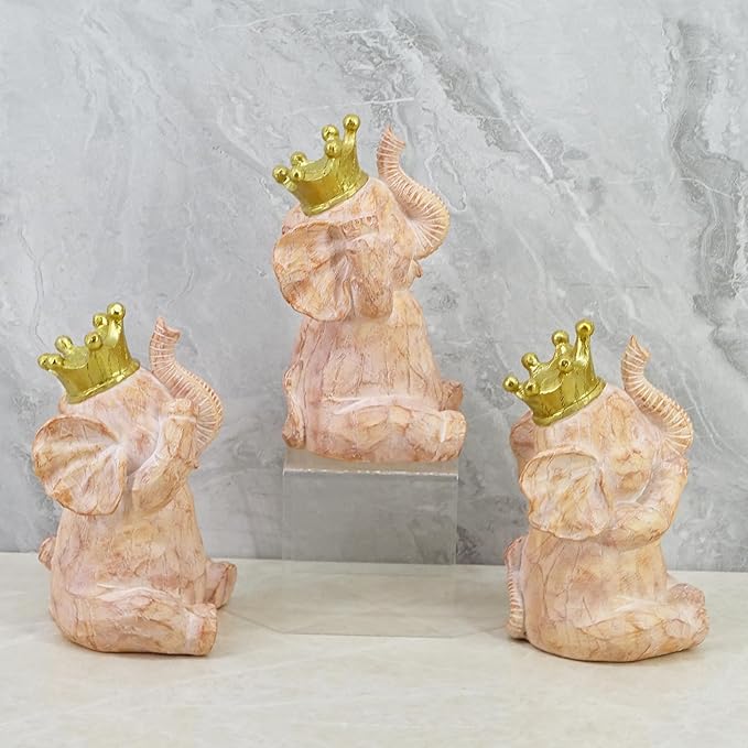 8-inch Resin Cartoon Three Hear-No, See-No, Speak-No Evil Stacked Elephants Collectible Statue Wood Grain Elephant Gift for Women, Boho Decor for Living Room