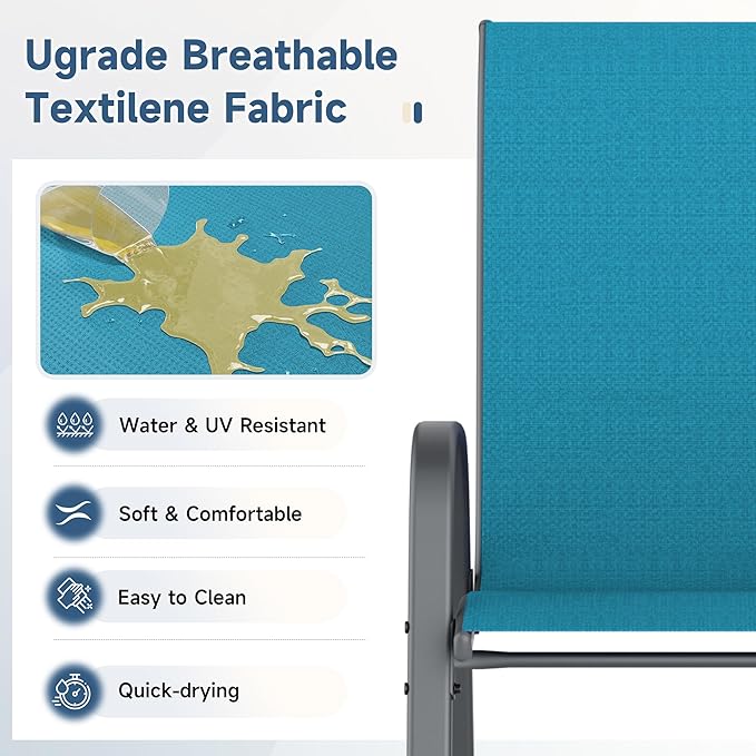 - 【ALL WEATHER & CAREFREE】 Fade-resistant textilene offers excellent durablity and keeps these comfortable outdoor chairs like brand new for a long time. It will add an instant focal point to your yard, and decorate your home season after season.