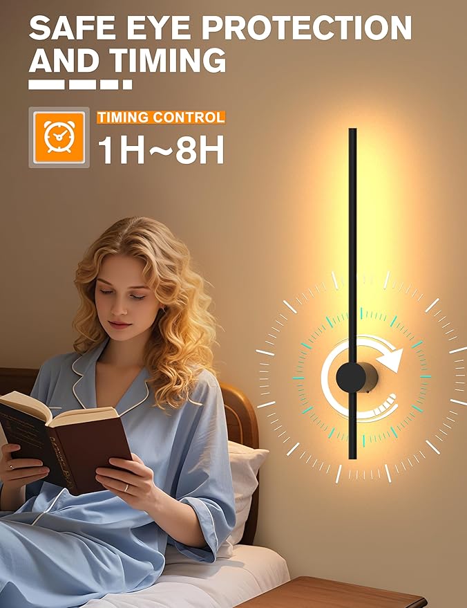- 【Timer & Remote Control】This wall lamp's remote lets you turn it on/off, adjust colors, and set brightness without moving an inch. Set the timer for 1 hour (perfect for kids' bedtime) or 8 hours (overnight accent lighting)—rechargeable picture light will auto-shuts off to save power. Best part? This wall sconces can remembers your last settings, so no annoying re-adjusting after power cycles. Just pick up right where you left off
