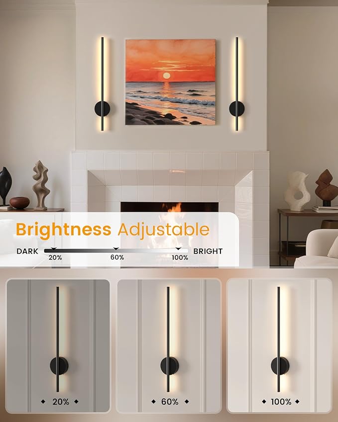 - 【3CCT & 4-Step Dimming】This sconces wall decor set of 2 features a built-in 5200mAh rechargeable battery, offering 4 adjustable brightness levels (0%-25%-60%-100%) and three color temperature options (2700K, 4000K, 5000K). The large-capacity battery provides an impressive runtime of 24 to 38 hours on a single charge, ensuring long-lasting illumination without frequent recharging.
