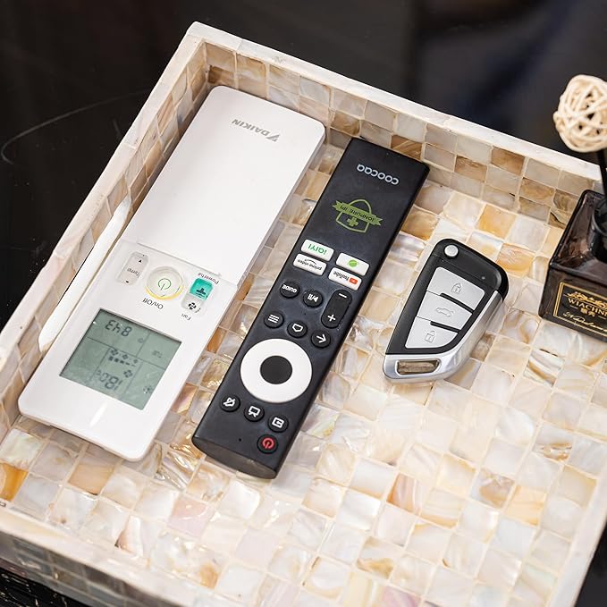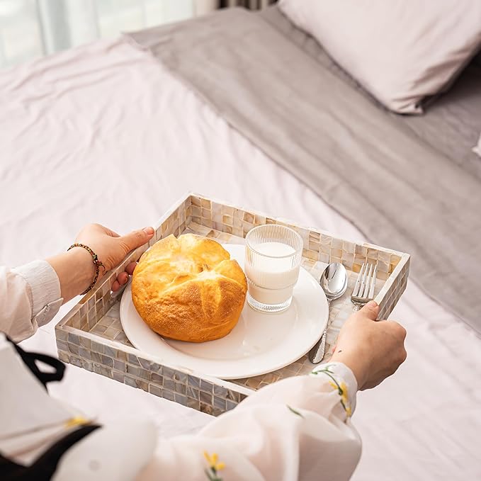 - UNIQUELY VERSATILE: With mother-of-pearl pattern, our square tray is unique for decorative purposes. Use it to serving foods, drinks or display candles, vases, or seasonal decorations, or organize items on your couch or TV table, blending practicality with style. The tray design fits various interior styles, from contemporary to minimalist, rustic farmhouse or luxury.