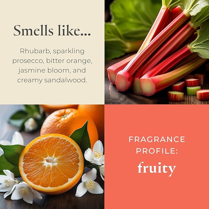 - EXPERTLY CRAFTED BLENDS: Infuse your space with a robust, long-lasting fragrance. Top Notes: Open aire, sparkling Prosecco, bitter orange. Middle Notes: Tart rhubarb, soft muguet, jasmine petal. Base Notes: Simple syrup, creamy sandalwood, white musk.