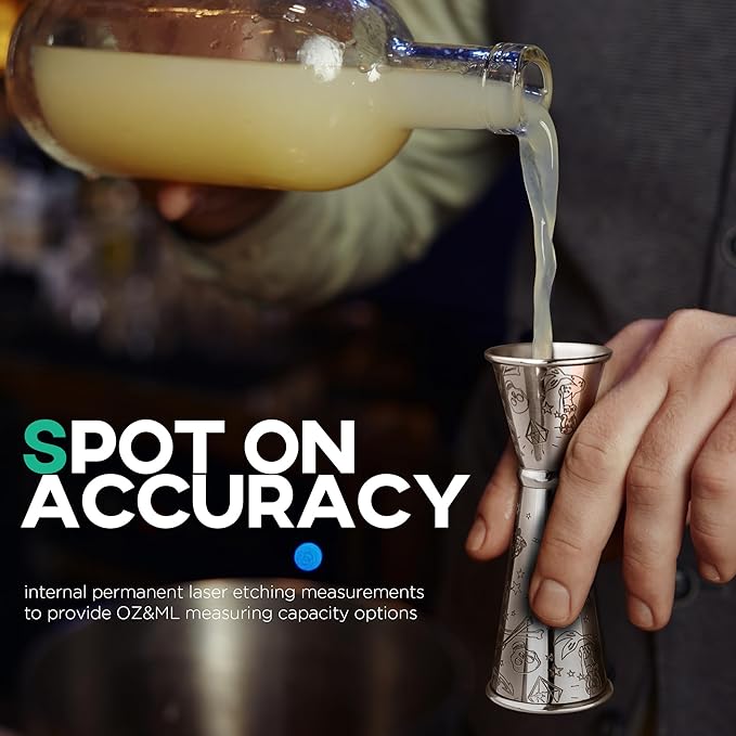 - Marking Precision: Measurements Inside, Homestia is a game-changer. It takes the guesswork out of mixing drinks and ensures consistency. Whether making cocktails for guests or just pouring a drink for myself, you will get the perfect amount every time