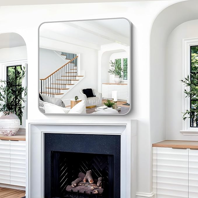 - ELEGANT ROUND CORNER DESIGN: This wall mounted square mirror features smooth rounded corners design that adds a soft aesthetic to the space. The rounded corners design also help to avoid the risk of being scratched by the corners of the mirror, safety and elegance, give you a better sense of use. Not only functional but also decorative. Make your whole room elegance and enhance your home decor.