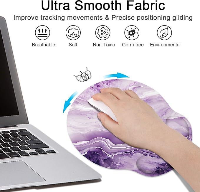 Britimes Purple Marble Gold Mouse Pad 3pcs Set with Wrist Support Non-Slip Rubber Base Ergonomic Pad,Mouse Wrist Cushion Support and Coasters for Home Office Gaming Easy Typing & Pain Relief