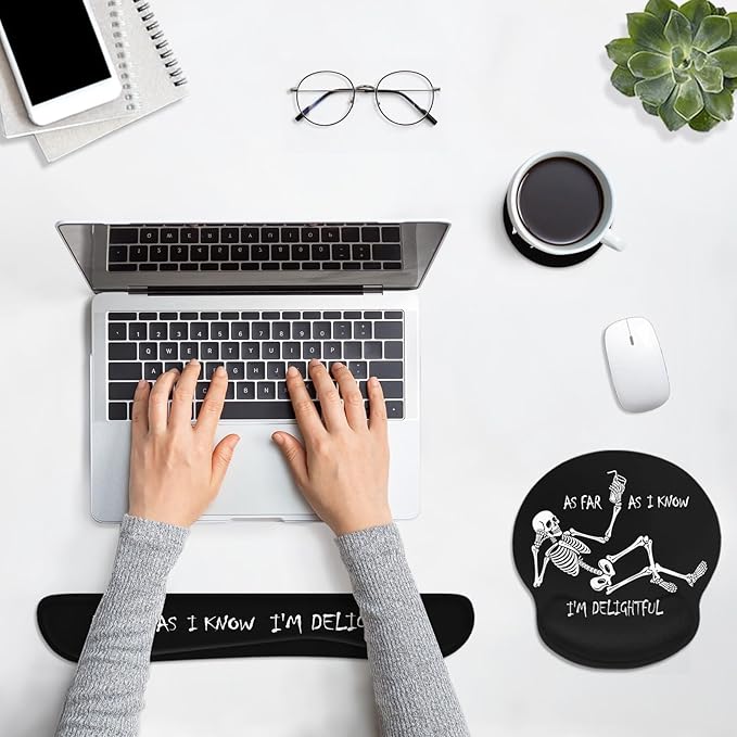 Britimes Skull Skeleton Black Ergonomic Mouse Pad Set with Wrist Rest Non-Slip Rubber Base Wrist Cushion Support and Coasters Mousepad with Wrist Support for Computer Keyboard and Desk