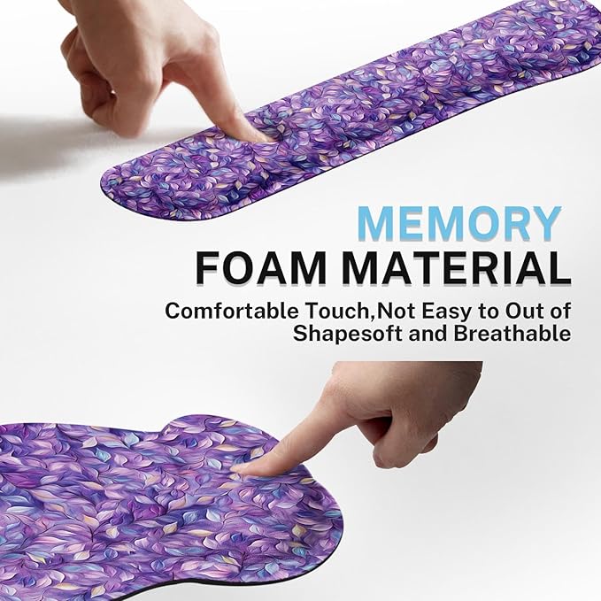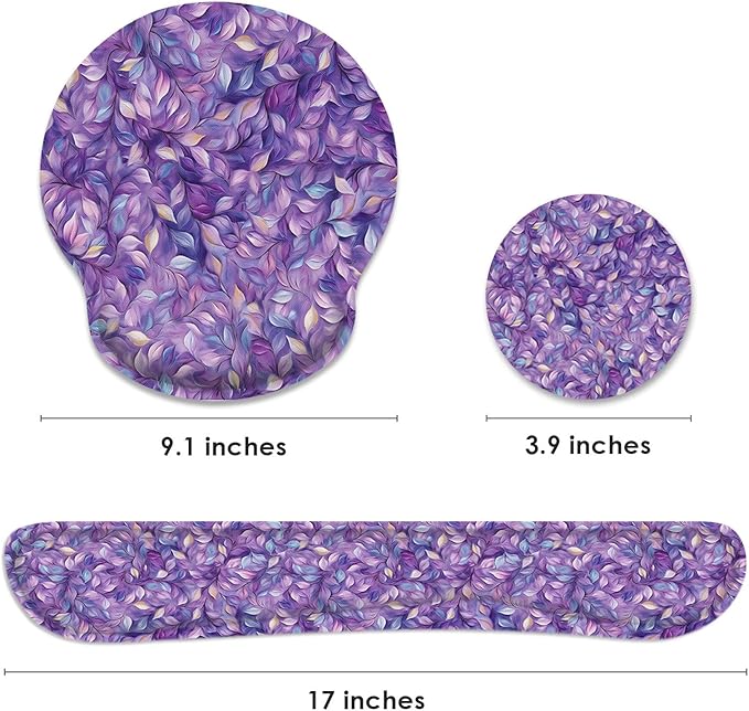 Britimes Purple Leaves Oil Painting Mouse Pad 3pcs Set with Wrist Support Non-Slip Rubber Base Ergonomic Pad,Mouse Wrist Cushion Support and Coasters for Home Office Gaming Easy Typing & Pain Relief