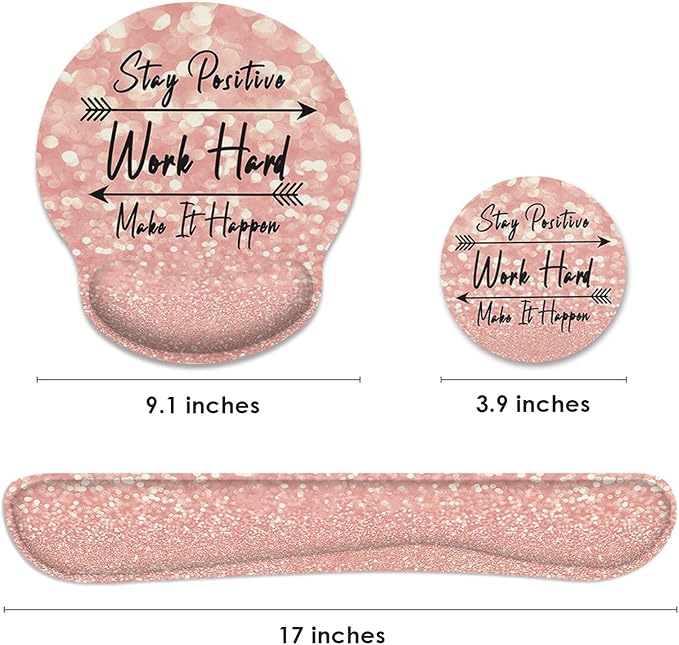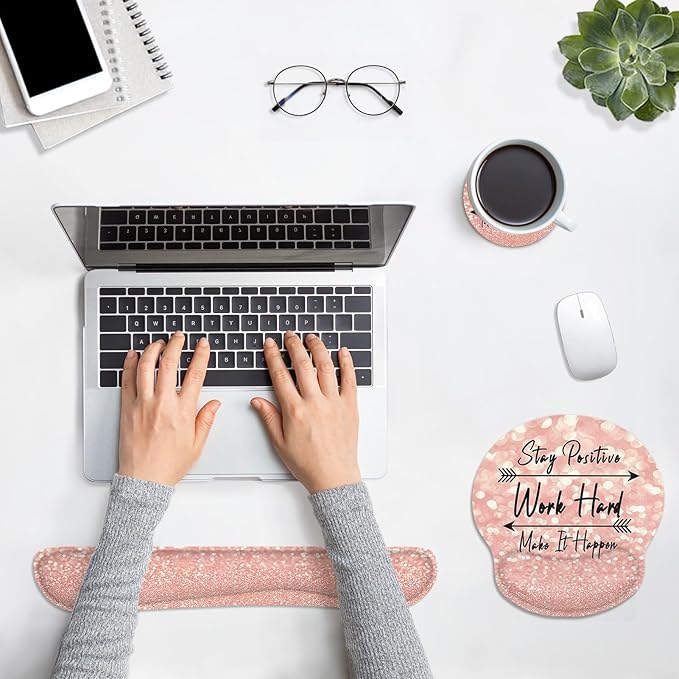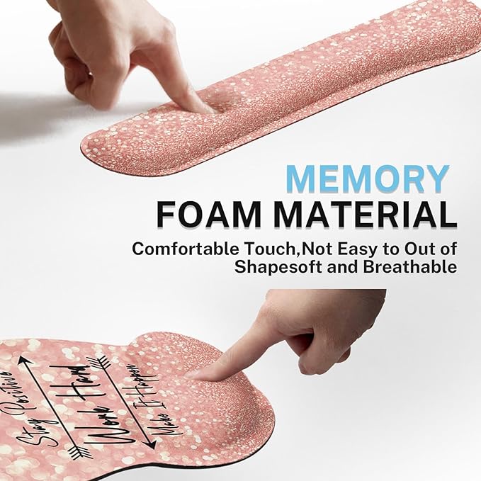 Britimes Pink Rose Gold Ergonomic Mouse Pad Set with Wrist Rest Non-Slip Rubber Base Wrist Cushion Support and Coasters Mousepad with Wrist Support for Computer Keyboard and Desk