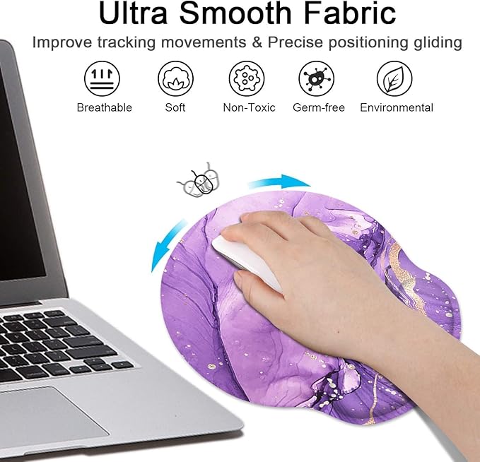 Britimes Purple Gold Marble Mouse Pad 3pcs Set with Wrist Support Non-Slip Rubber Base Ergonomic Pad,Mouse Wrist Cushion Support and Coasters for Home Office Gaming Easy Typing & Pain Relief