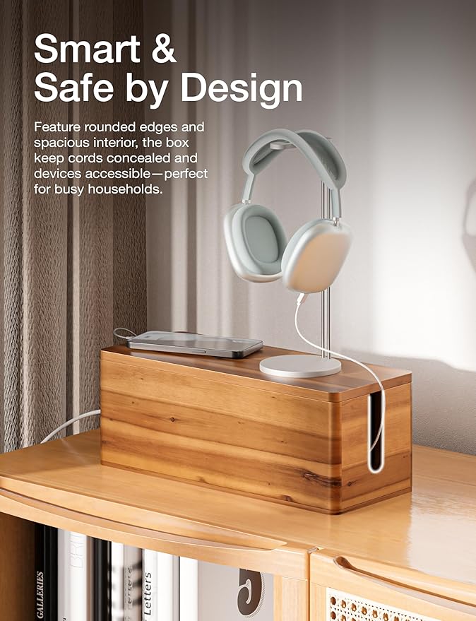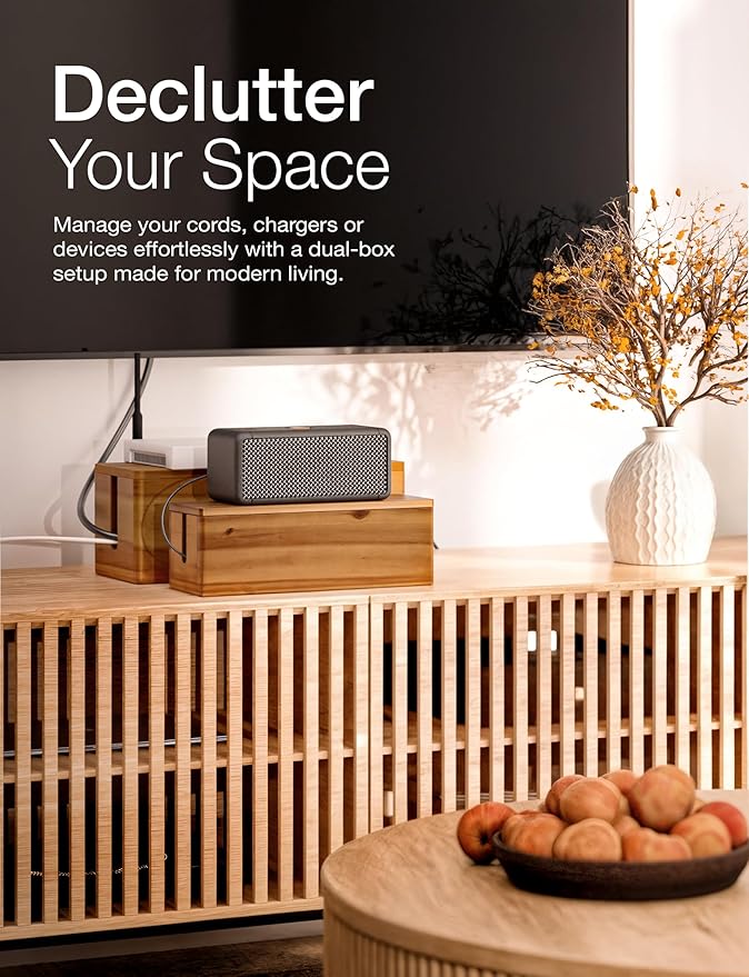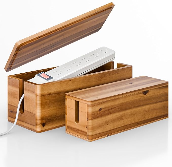- Natural Acacia Wood: Handcrafted from solid acacia, each wooden cable management box features unique wood patterns, offering a premium alternative to plastic cable organizer boxes. A timeless upgrade that complements both modern and rustic interiors