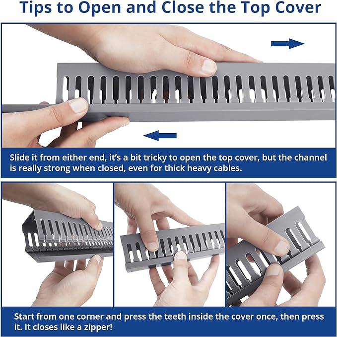 - Excellent Structural Design: Our cable management kit can manage and protect cables more efficiently. Its bottom and cover are stable and firm, and the design conforms to international standards. The Cable Channel is thickened to 0.06 in, which is durable, not easy to deform, sturdy, and anti-warping