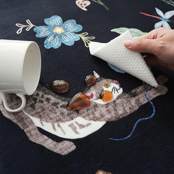 - Machine Washable Rug—Use handheld vacuum cleaner, broom, or wipe for daily cleaning to prevent dust and crumbs from setting into the fibers. if excess liquid remains or dirt on the surface of the rug and you want your rug to to be thoroughly clean, Machine wash with cold water on gentle cycle(not to add bleach),air dry or dry on air-only cycle with out heat.