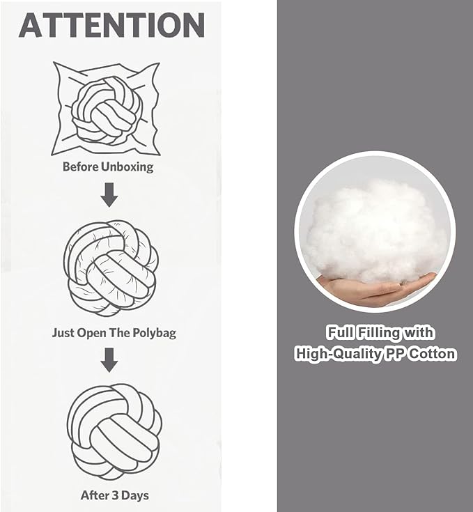 - 【WARM TIPS】Because we use vacuum packaging, when you first receive Knot Throw Pillows, you need to dry it in the sun for three days, and wait for it to return to its original shape without wrinkles.