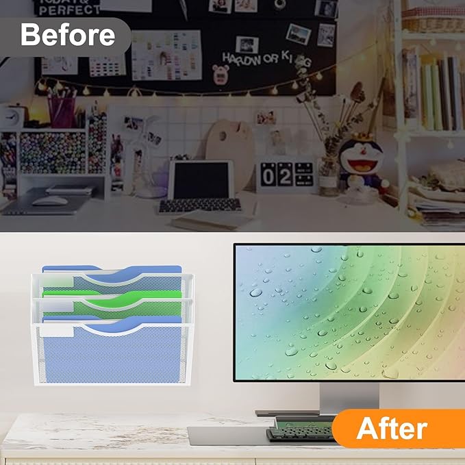 Kuntine.B Wall File Organizer Office Hanging Magazine Holder Wall File Organizer for Office Home (White, 3 Tier)